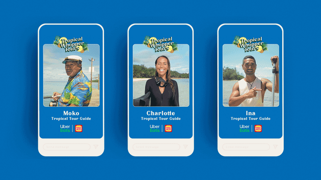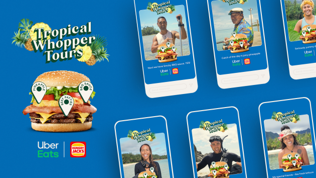 Hosted across social media, ‘Tropical Whopper Tours’ are fronted by tour guides like Ina from KiteSUP Paddle board excursions and Charlotte Piho’s turtle and underwater images tours and get viewers on a journey all around the key elements of the tropical burger – inviting you to purchase a person on the app.